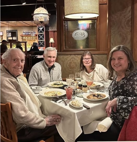 The Penfield restaurant "Charley Browns" is Coach's favorite. Here he is on January 21, 2025 (still going strong at 100 years old!) with Scott Thon, Laura Cheney and Terri Thon.