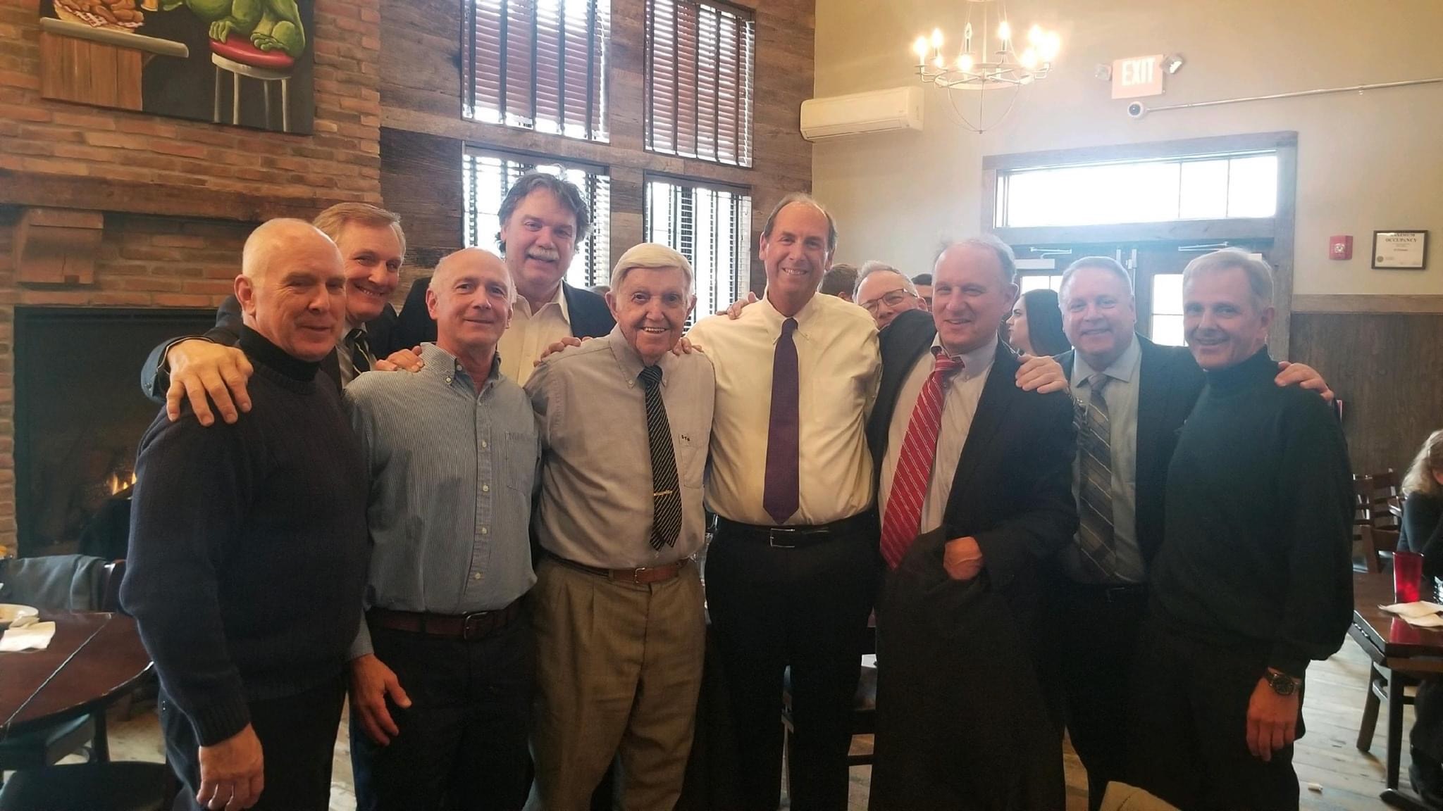 Coach Steitz retired from coaching and teaching but still keeps in touch with his Alumni. Here he is enjoying some time with some of the Penfield High School class of '73.